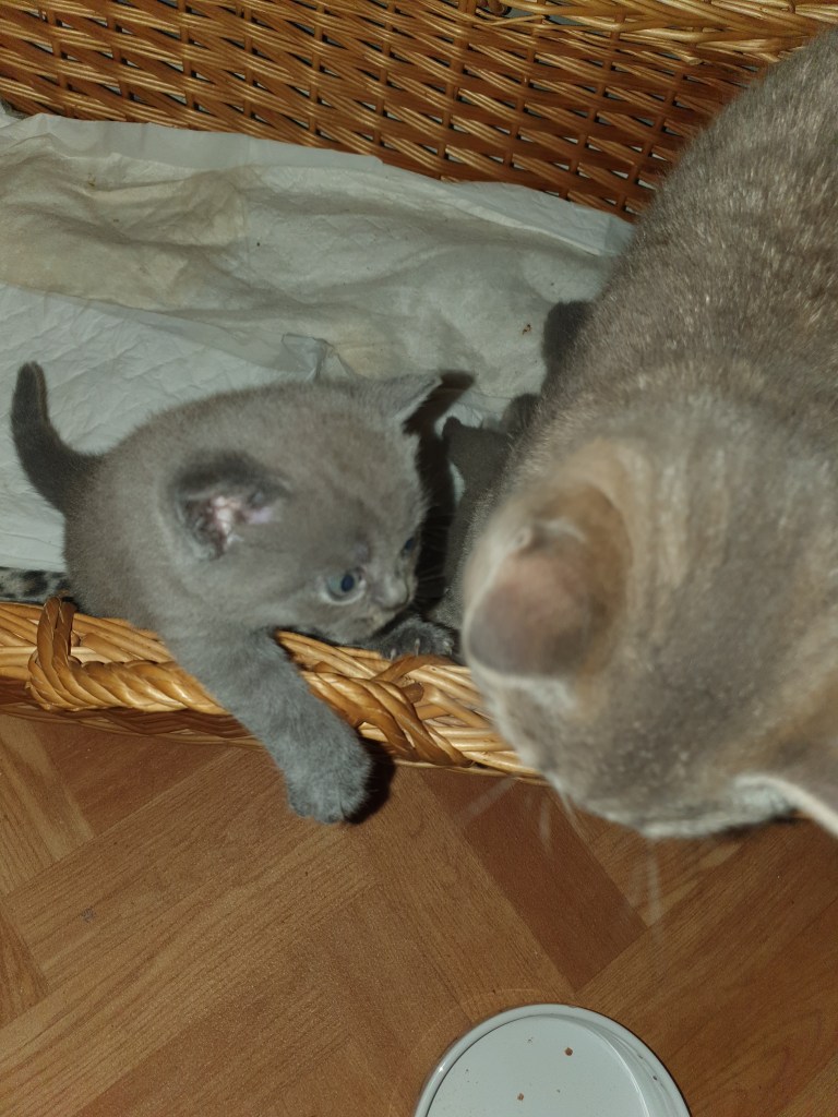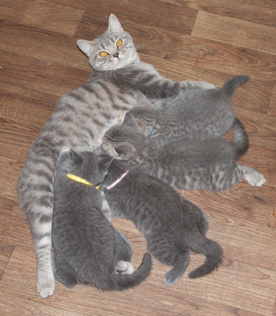 On Thursday, 25th May, Champion Mitchkoff Lacey delivered her kittens; we have 4 boys and one girl. The girl is reserved, as well as two of the boys.
